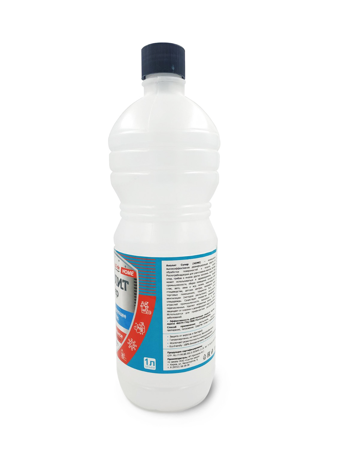 Анолит Супер (HOME) — инновационное высокоэффективное дезинфицирующее средство для обработки поверхностей и воздуха, одобрен Роспотребнадзором для уничтожения вирусов, бактерий, спор, грибов и многих других патогенов. Анолит Супер может использоваться в здравоохранении, пищевой промышленности, уборке помещений, сельском хозяйстве, авто, авиа и ж/д линиях, животноводстве и птицеводстве, детских центрах, тренажерных залах, торговых помещениях, предметов быта, систем вентиляции (методом распыления), инструментов, спецодежды. Существует множество применений и отраслей промышленности, выходящих за рамки перечисленных. Удаляет неприятные запахи, отлично защищает от плесени и дезинфицирует воду в бассейнах. Используется для профилактики распространения заболеваний.